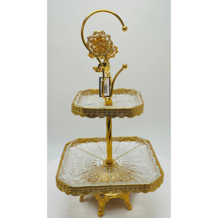 Découvrez L’Élégance Sucrée, le présentoir à gâteaux carré doré avec ses 2 compartiments transforme vos créations culinaires en véritables œuvres