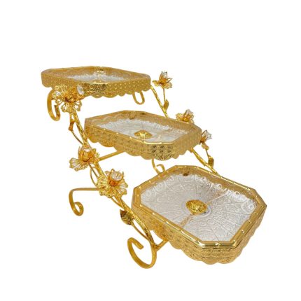 Découvrez L’Élégance Sucrée, le présentoir à gâteaux doré avec ces 4 compartiments carré qui transforme vos créations culinaires en véritables