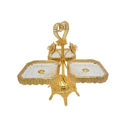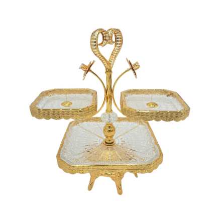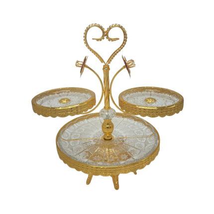 Porte-gâteaux à 3 compartiments au design raffiné avec finition cœur, idéal pour une présentation élégante et romantique de vos douceurs.