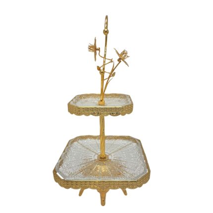 Porte-gâteaux carré à 2 compartiments, idéal pour une présentation élégante de vos desserts et fruits secs. Parfait pour toutes vos