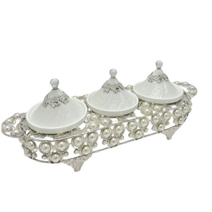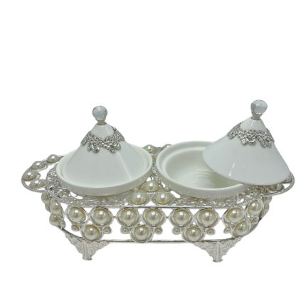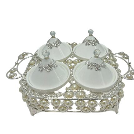 Optez pour une présentation complète et luxueuse avec ce plateau 4 coupelles. Son design carré structuré associé aux détails perlés